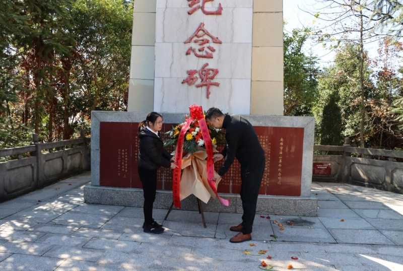 缅怀革命先烈,传承红色精神。韶关开放大学教工支部与群康社区第一支部的党员同志先是来到了南雄油山镇革命纪念碑,党员同志们为在油山革命战争中牺牲的烈士们敬献花篮,缅怀革命先烈,追思烈士丰功伟绩。