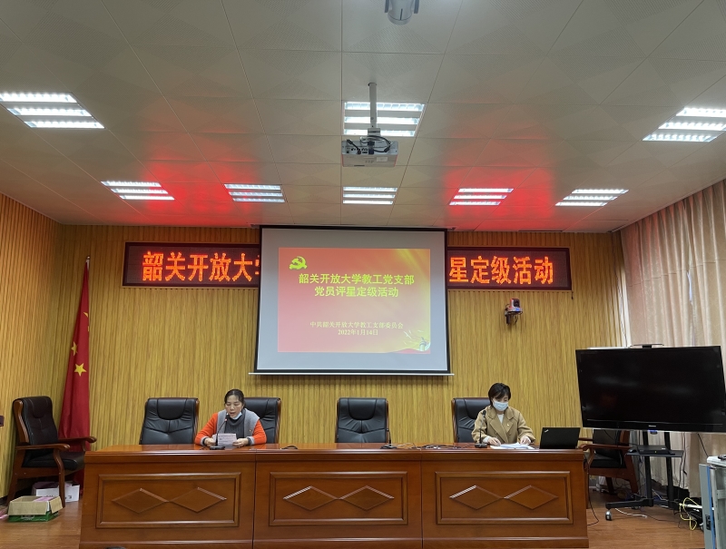 为全面贯彻新时代党的建设总要求和新时代党的组织路线,切实提升党支部标准化规范化建设水平,充分发挥党支部战斗堡垒作用,韶关开放大学教工党支部在2022年1月14日开展了党员评星定级活动,共22位党员参加了本次活动。
