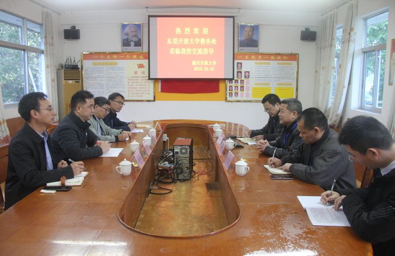 3月7日下午,东莞开放大学教务处主任廖继标一行4人来我校进行教务教学经验交流,我校副校长刁辉雄、教务处主任何荣泉、教学处主任钟红君、信息中心欧主任出席了此次教学教务座谈会。