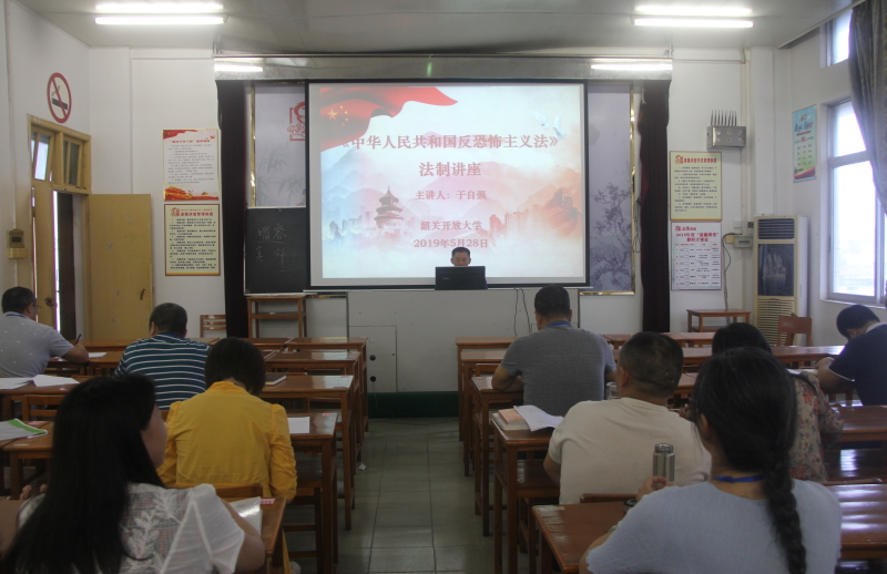 为全面提高广大教师反恐意识,增强应对暴恐袭击技能和自救互救能力,有效预防学校安全及恐怖暴力突发事件,5月28日上午,我校组织全体教职工在综合楼431教室集中学习反恐怖法等相关知识,并邀请我校于自强老师专题讲解《中华人民共和国反恐怖主义法》。