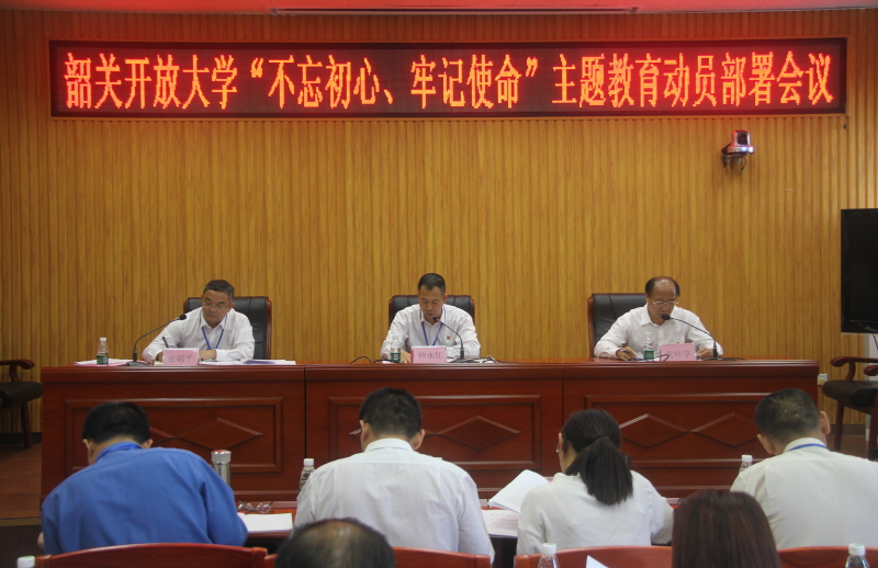 校党委书记、校长钟永红代表学校党委做动员讲话,他指出,开展“不忘初心、牢记使命”主题教育,是以习近平同志为核心的党中央作出的重大部署,对我们党不断进行自我革命、统筹推进“五位一体”总体布局、协调推进“四个全面”战略布局、实现“两个一百年”奋斗目标和中华民族伟大复兴的中国梦,具有重大历史意义。钟永红强调,开展“不忘初心、牢记使命”主题教育的根本任务是深入学习贯彻习近平新时代中国特色社会主义思想,锤炼忠诚干净担当的政治品格,团结带领全校党员干部、师生员工为实现学校转型发展共同奋斗。要认真按照“守初心、担使命,找差距、抓落实”的总要求,扎实推进主题教育,真正实现理论学习有收获、思想政治受洗礼、干事创业敢担当、为民服务解难题、清正廉洁作表率的目标。钟永红要求,开展“不忘初心、牢记使命”主题教育时间紧、任务重、要求高,学校各支部、各科室要以高度的政治自觉、强烈的政治担当,坚持高标准、严要求,把开展“不忘初心、牢记使命”主题教育作为重要政治任务,切实统一思想,认真落实主体责任,强化督促检查,确保主题教育收到实效。