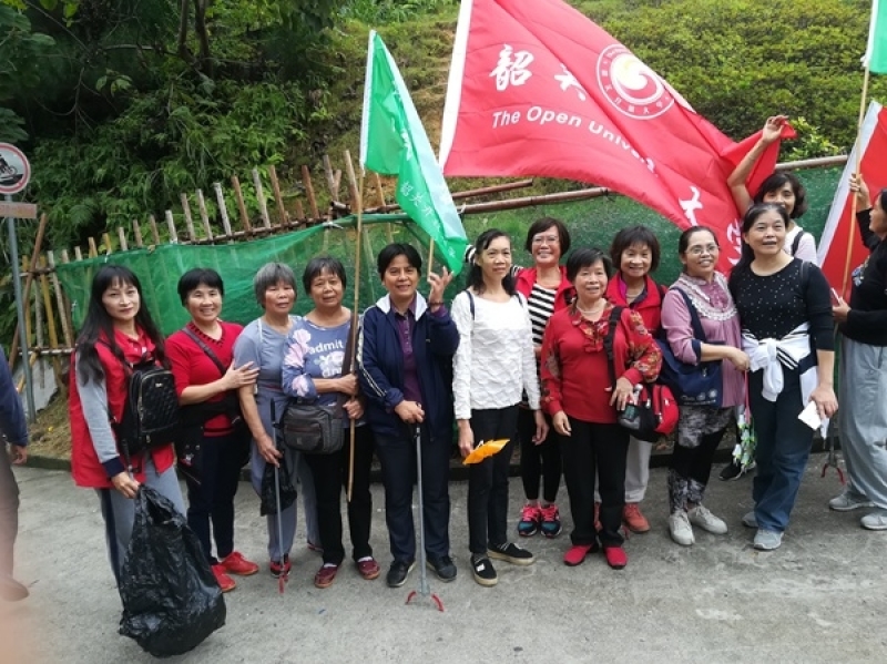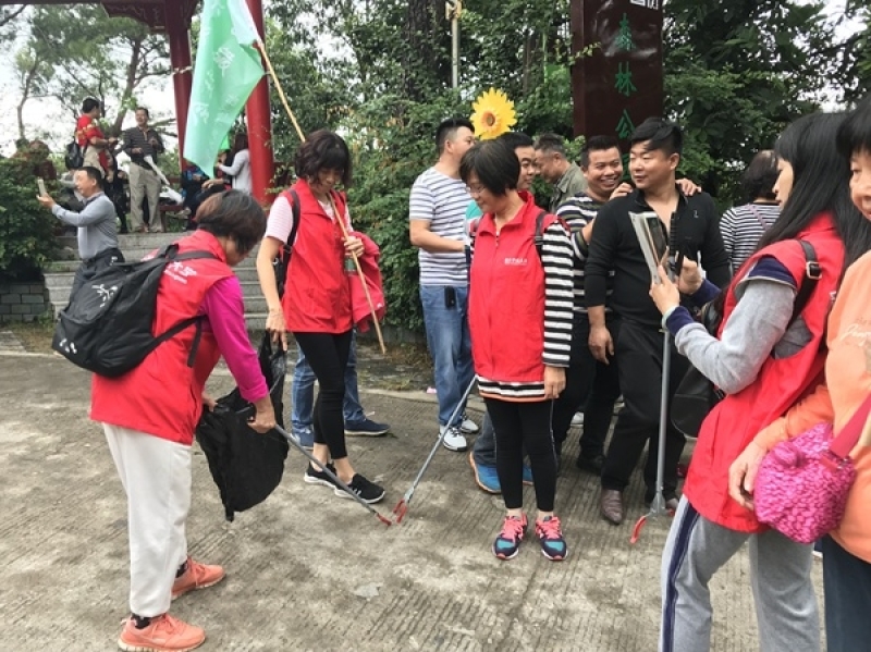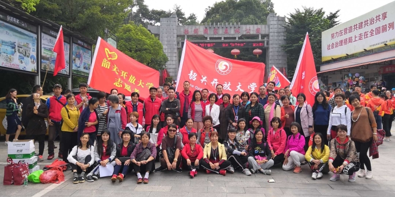 今年的登山活动还多了一个亮点,那边笑声朗朗的志愿者,是社区教育的学员们。韶关开放大学自2017年7月更名后,学校功能定位为服务韶关全民终身学习的新型高等学校。学校面向全社会开展高等学历教育、社区教育、老年教育、职工教育、新型农民教育和各类培训。自今年春季开设社区教育课程以来,受到了社区居民的热烈欢迎。活动中,他们一边观看沿途秋景,一边清理路边的垃圾,一边感慨:“我们真的觉得很幸福,感谢国家,感谢政府,感谢学校为我们开设免费的高质量的社区教育课程。”他们用朴实无华的语言道出了他们的心声。