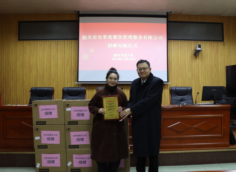 为了帮助韶关开放大学改造5号教学楼9个课室的教学环境,韶关市安荣苑餐饮管理服务有限公司周招荣董事长向学校捐赠了3万元的电脑主机,它们进一步保障了学校直播课及面授课的教学质量。