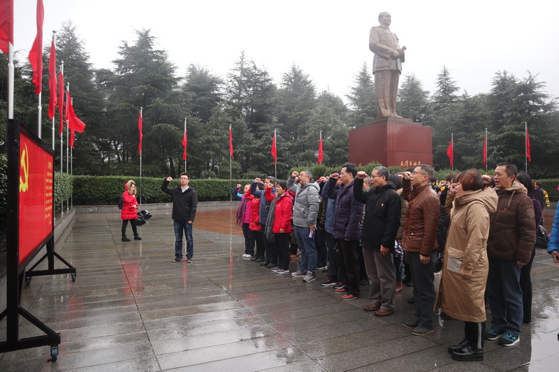 7日上午,全体学员首先前往毛泽东同志铜像广场,瞻仰伟人风范,感悟革命精神,并集体在主席铜像前重温入党誓词,再次接受洗礼。随后,学员一行参观了毛泽东同志纪念堂、故居和滴水洞,并开展了现场教学活动,培训老师现场讲解了毛泽东同志及其亲人在革命期间不屈不挠、敢于牺牲的英勇事迹。下午,全体学员们前往刘少奇同志纪念馆、刘少奇故居、橘子洲等进行了一系列的现场教学,回顾刘少奇同志的成长和革命历程,重温韶山的红色记忆和“为有牺牲多壮志,敢叫日月换新天”的韶山精神。