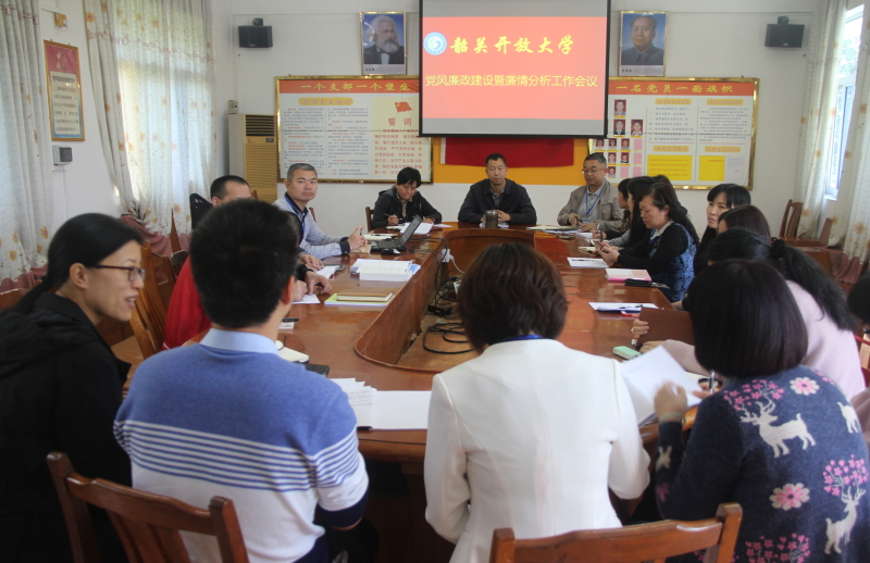 3月28日上午,韶关开放大学在一号楼三楼会议室召开党风廉政建设暨廉情分析工作会议,对2018年度党风廉政建设工作进行安排部署,我校全体教职工参加,会议由校党委委员、副校长张朝平主持。