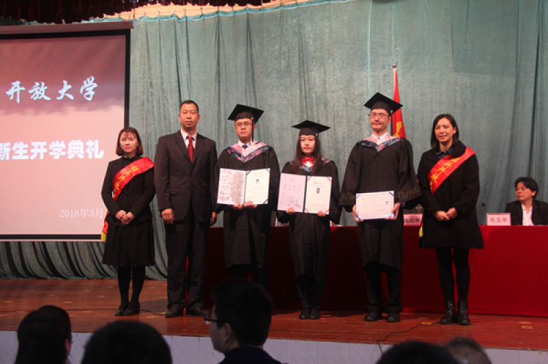 典礼上为新获得本科学士学位的毕业生代表颁发学位证书,并表彰了年度获奖学生,其中,温游等7名学生荣获国家开放大学奖学金、黄新龙等5名学生为“优秀学生会干部”、吴煌等12名同学为“优秀班干部”、陈军明等12名同学为“优秀学生”。