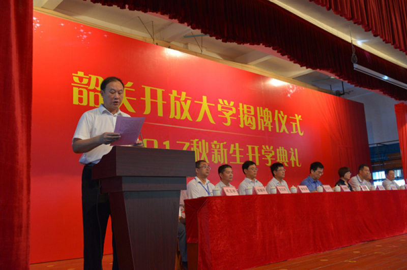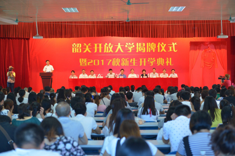 9月24日,韶关开放大学揭牌仪式暨2017秋新生开学典礼在韶关开放大学大礼堂举行。韶关市政府副厅级干部王伟阳、广东开放大学党委书记方健壮、市人大、市政协、市教育局、韶关开放大学等各级领导以及全体师生600余人参加了仪式。