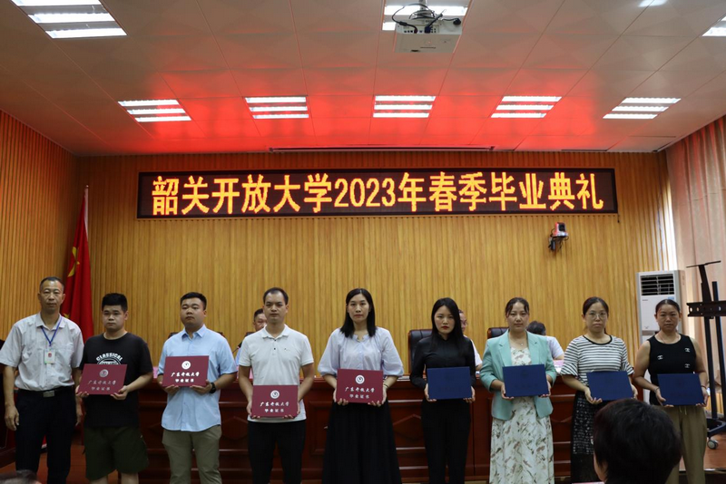 典礼最后,韶关开放大学党委书记、校长钟永红向各位毕业生代表颁发了毕业证书,并合影留念。