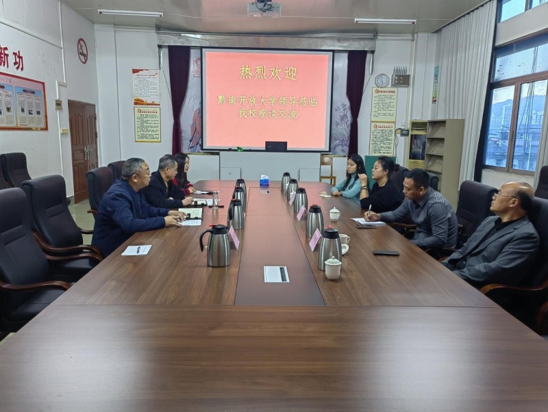 12月8日,黔南开放大学党委书记、校长陈辉一行4人莅临我校开展调研交流活动。学校党委委员、副校长张朝平、傅树群等校领导以及相关科室负责人参加活动。